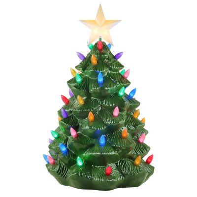 15 Hand Painted Ceramic Christmas Tree Green Pre Lit Tree With Star 1 Metro Market